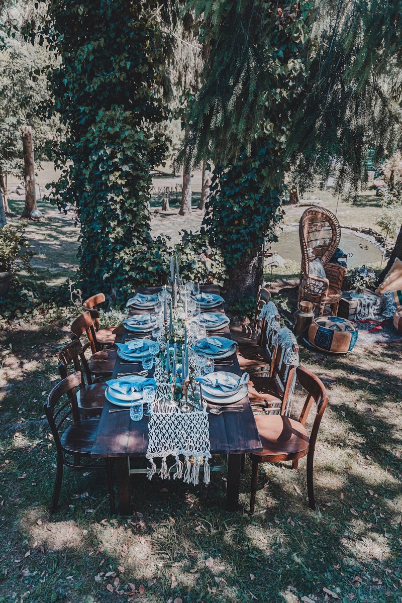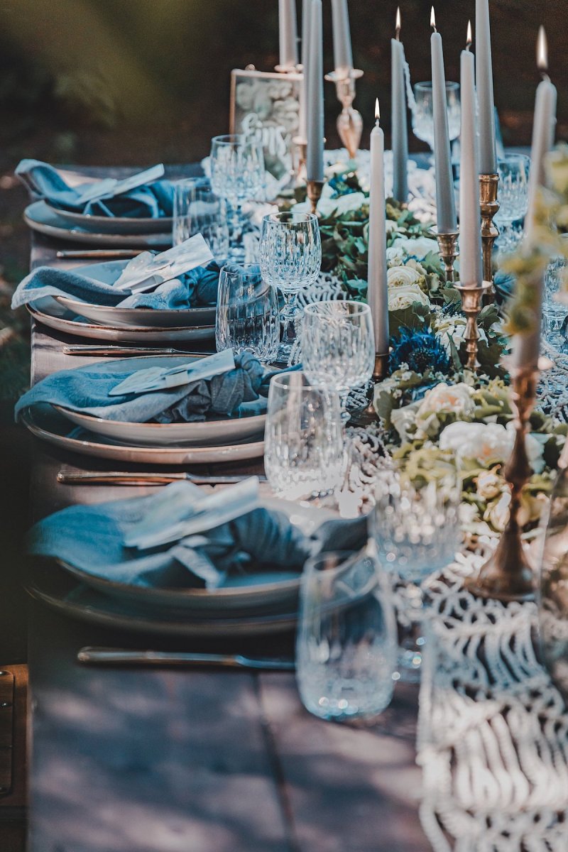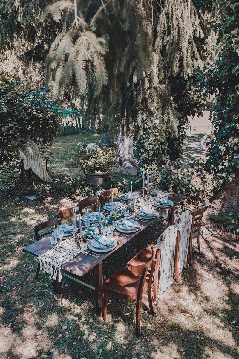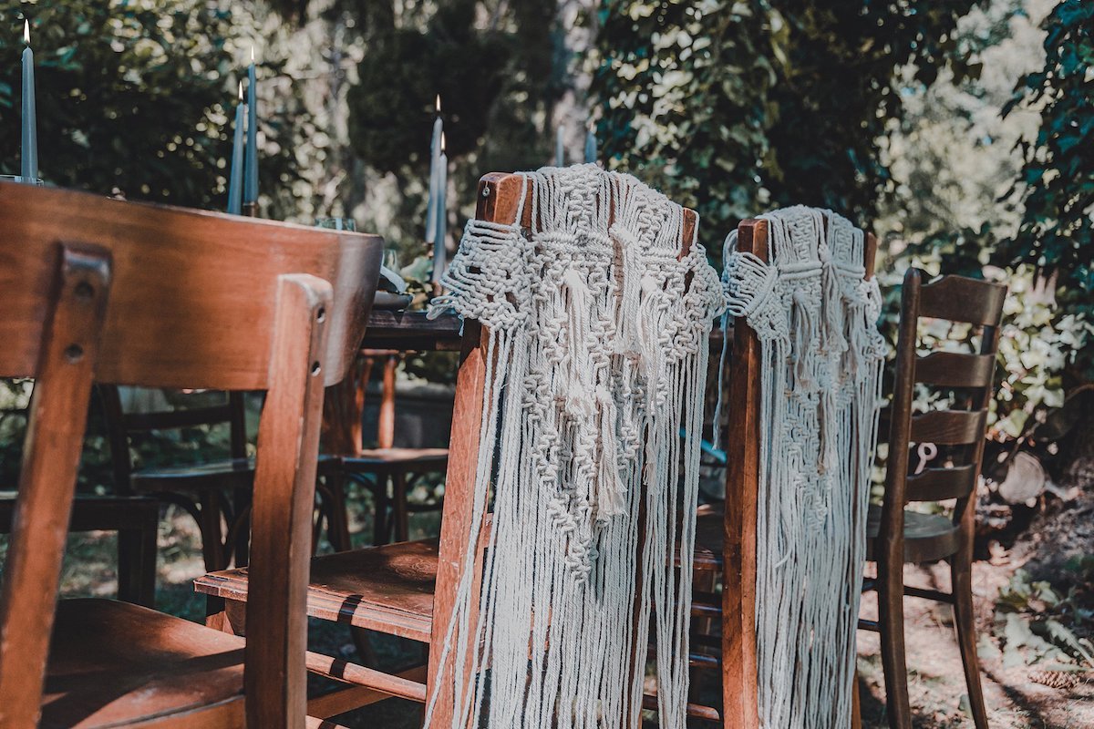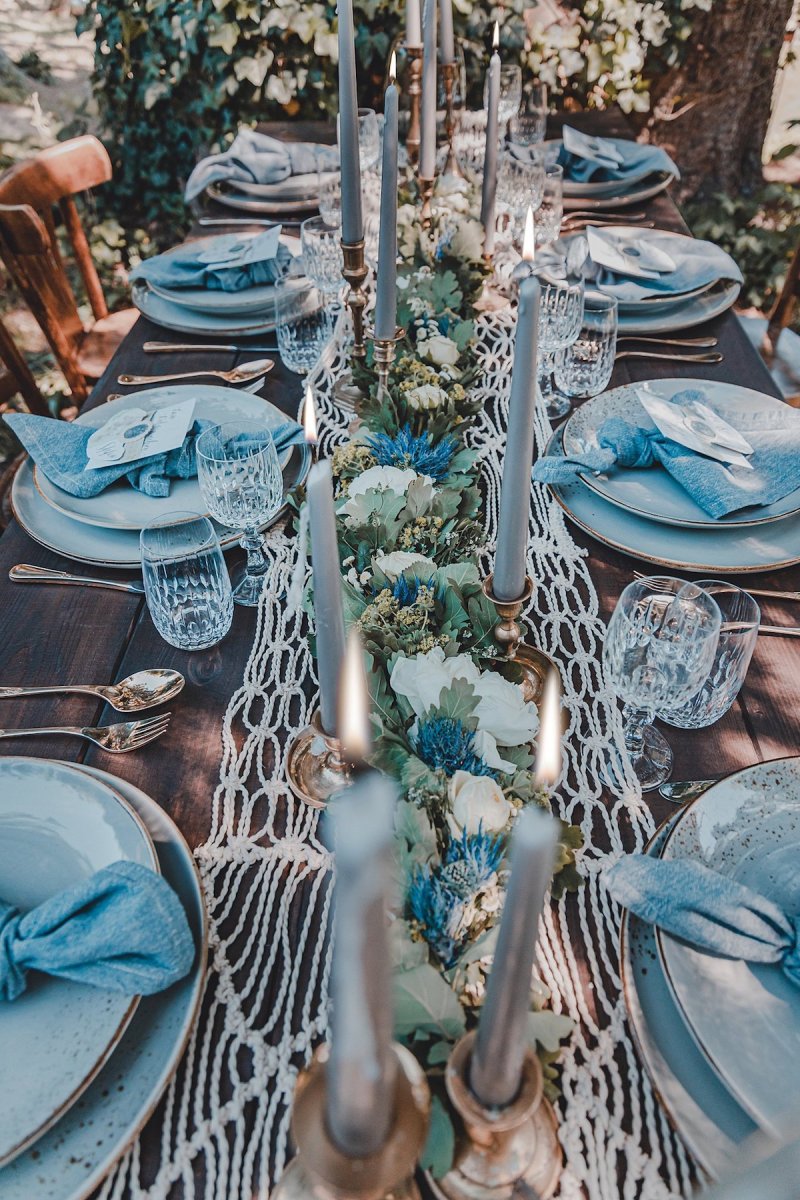 Die sanften, warmen Farben des heimischen Gartens standen bei dem Farbkonzept dieser Green Wedding Pate. Bewusst hat sich das Team dazu entschieden, ausschließlich heimische Blumen, die gerade Saison hatten, mit einfließen zu lassen und die restliche Deko wie die Hochzeitstafel oder Boho Lounge in die natürliche Umgebung der Paasmühle einzubinden. Für akzentuierte Highlights sorgt hier der Farbton Gold, der von einem edlen Blau getragen wird. Ein Konzept, welches ich so noch nicht oft gesehen habe und das von der Hochzeitsfotografin Kathrin Heumann in sehr eindrücklichen Bildern festgehalten wurde.